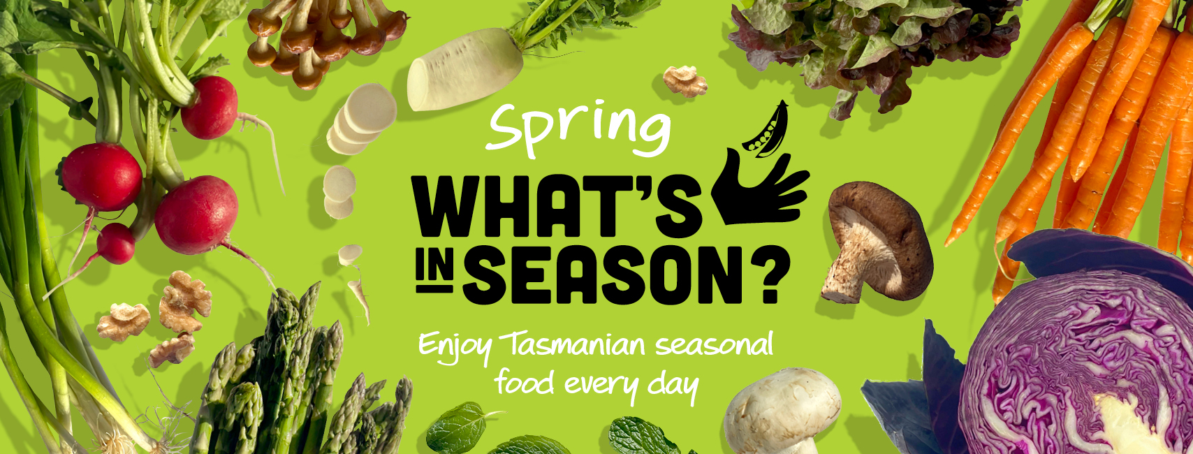Asparagus arrives mid-season in Tasmania and is a must for breakfast, adding a green twist to your morning eggs. Baby carrots and radish add a crisp crunch and burst of colour to the dinner table and lunchbox.